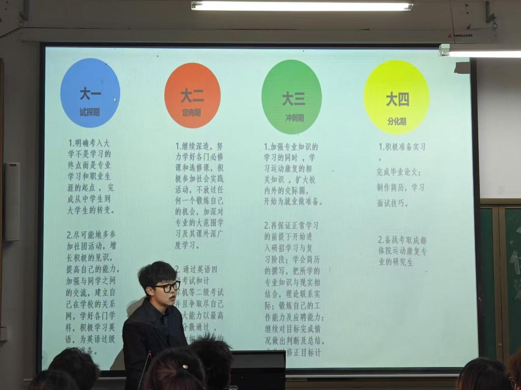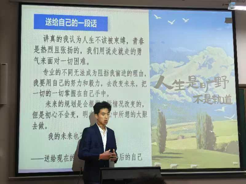 在主持人文亮的开场词结束后,比赛正式开始。比赛过程中,选手们逐一上台。展示自己的学业规划和实施策略。他们通过PPT、视频等多种形式,生动形象地呈现了自己的梦想与努力方向。