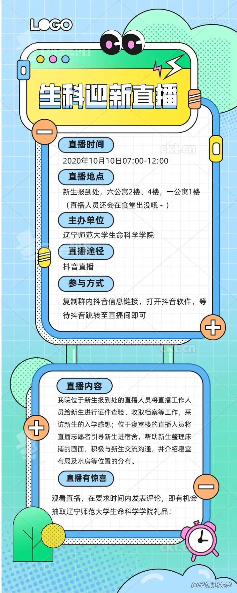 本次直播链接会在10月10日正式直播前发至新生家长群,欢迎家长们来观看小20们第一次离开家庭独自报到的样子,领略小20们要生活四年的寝室生活和校园风景,说不定还能对小20们有一个新的认识哦~