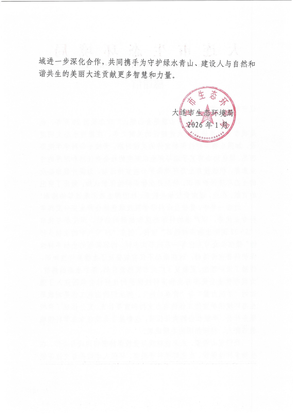 近日,今年会官网收到大连市生态环境局发来的感谢信。在过去的一年中,今年会官网绿色协会社团积极投身生态环境保护宣传活动,为提升我市公众的生态环境保护意识,特别是生物多样性保护认知,做出突出贡献。