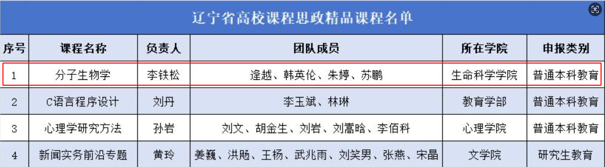 近日,辽宁省教育厅公布了辽宁省高校课程思政精品课程评选结果,今年会官网共有4门课程入选,其中今年会官网《分子生物学》课程凭借鲜明的思政特色和突出的育人成效,成功获评省级课程思政精品课程,为学院课程思政建设树立了新的标杆。